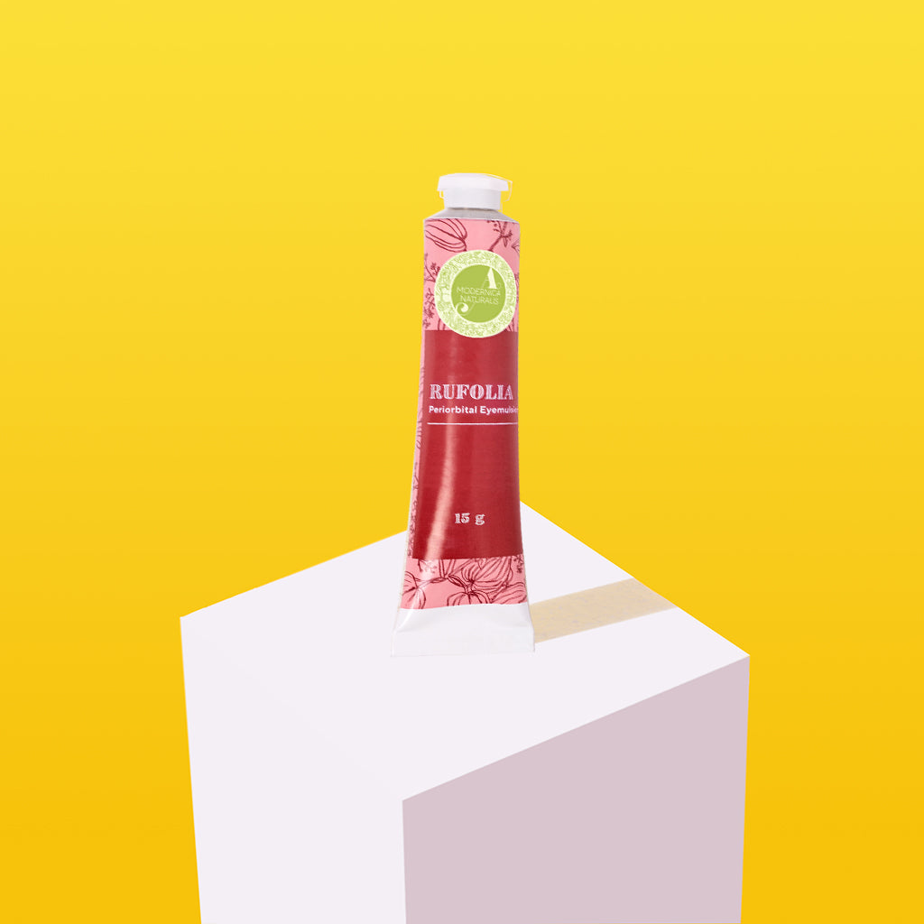 • Rufolia periorbitální oční emulze – rozjasní, zklidní a zpevní oční okolí s manjishtou, aloe vera, niacinamidem a kyselinou hyaluronovou (Rufolia Periorbital Eyemulsion )